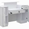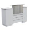 Receptia pentru salon este primul impact pe care clientul il are cu salonul. Amplasata in spatiile destinate primirii clientilor este foarte utila in saloanele de infrumusetare. Fabricata din MDF de cea mai inalta calitate, aceasta receptie are o structura robusta si clasica, fiind potrivita in orice salon.