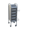 Ucenicul este un element esential in salon deoarece ofera stilistului acces facil la toate ustensilele. Acesta poate fi folosit atat in frizerie cat si in coafor. Dotat cu 5 tăvi de plastic detașabile pentru depozitare, cu suport pentru uscator, este de un real ajutor in salon. Confectionat cu rama din metal, ucenicul este fiabil si foarte rezistent.