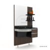 Post de lucru frizerie Alpeda Blacco este prevazut cu vas de sticla, baterii inox rezistente la rugina, polite de lemn, oglinda, sertare.