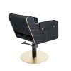 Scaunul de coafor Alpeda Kai Gold imbina armonios detaliilor din lemn cu stilul modern, adaugand o eleganta estetica decoratiunilor salonului de coafura. Frumusetea acestui scaun de coafor poate fi suprinsa in orice detaliu, iar eleganța care decurge din combinația de confort cu detaliile din lemn il face remarcabil.