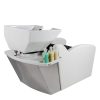 Unitatea de spalat ALPEDA ZEN WASH este prevazuta cu vas ceramic de forma patrata, culoare alba sau neagra, cu baterie din inox si baza alba din acril .