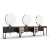 Postul de lucru Alpeda Stil se distinge prin simplitate si eleganta. Acesta se incadreaza cu usurinta in orice salon de infrumusetare datorita design-ului sau deosebit. Oglinzile rotunde vor iesi in evidenta prin simplitatea lor.