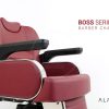 Scaunul pentru frizerie ALPEDA BOSS AE este robust, foarte rezistent are un design modern, baza cromata solida, pompa actionata electric, reglabil pe inaltime, suport pentru picioare fixat pe podea, spatar rabatabil actionat electric, tetiera detasabila, manere plastic lacuit.