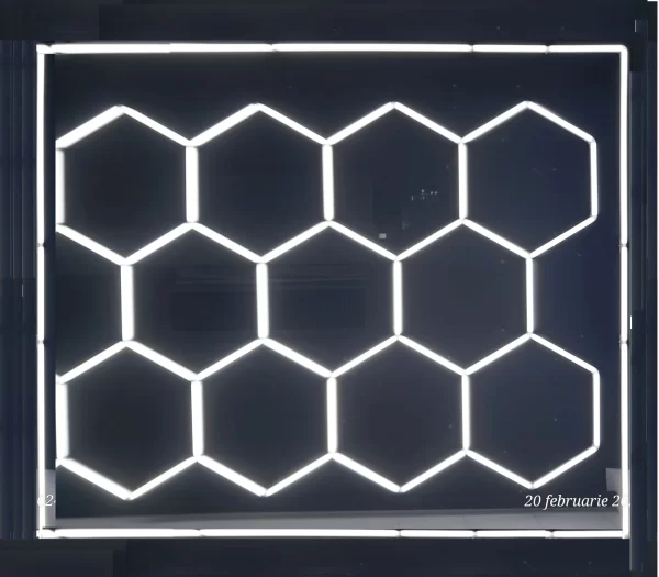 Hexagoanele luminoase LED Honeycomb sunt cele mai in voga corpuri de iluminat pentru saloanele de infrumusetare, barber shop-uri si showroom-uri auto. Ele sunt formate din elemente luminose LED. LED-ul este acoperit de o carcasa PVC ce oferta efectul de unformizare a luminii. Hexagoamele liminoase sunt interconectabile, oferind astfel posibilitatea si oportunitatea de a crea forma dorita si de incradrare perfecta in spatiul destinat.