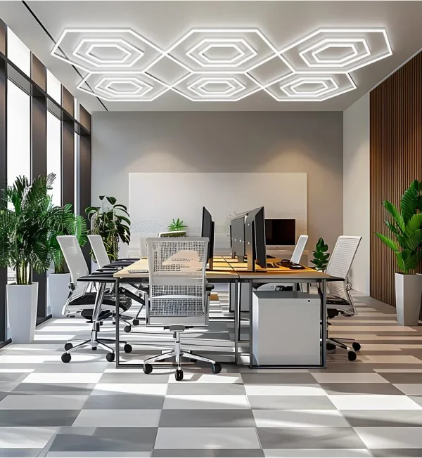 Hexagoanele Luminoase redefinesc conceptul de iluminare, de aceea este indicat in showroom -uri si barber shop-uri unde este necesara multa lumina.
