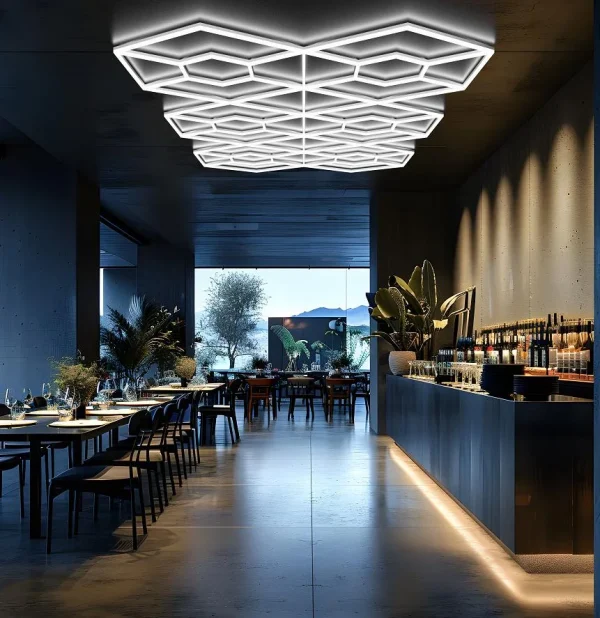 Hexagoanele Luminoase redefinesc conceptul de iluminare, de aceea este indicat in showroom -uri si barber shop-uri unde este necesara multa lumina.