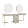 Postul de lucru coafor dublu NANCY oferă o estetică unică, îmbinând eleganța designului futurist cu o abordare inovatoare. Corpul din material MDF laminat este utilizat și în partea superioară a mesei și a oglinzii, oferind o utilizare îndelungată, conferind în același timp încredere prin robustețea sa. Iluminarea cu LED-uri și funcția de glazurare a oglinzii oferă o experiență atrăgătoare, în timp ce picioarele metalice acoperite cu vopsea electrostatică pulbere sporesc stabilitatea. Sistemul prize si sertare cu șină tandem din partea inferioară extinde zona de utilizare și asigură ordine.