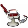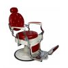 Scaunul de frizerie/ Barber chair Strawberry Cheesecake confectionat din fonta de culoare alba, tapiterie din piele de culoare rosie asemeni unei felii de cheesecake cu capsuni, aduce o nota de bucurie si o atmosfera vesela in salonul dumneavoastra.