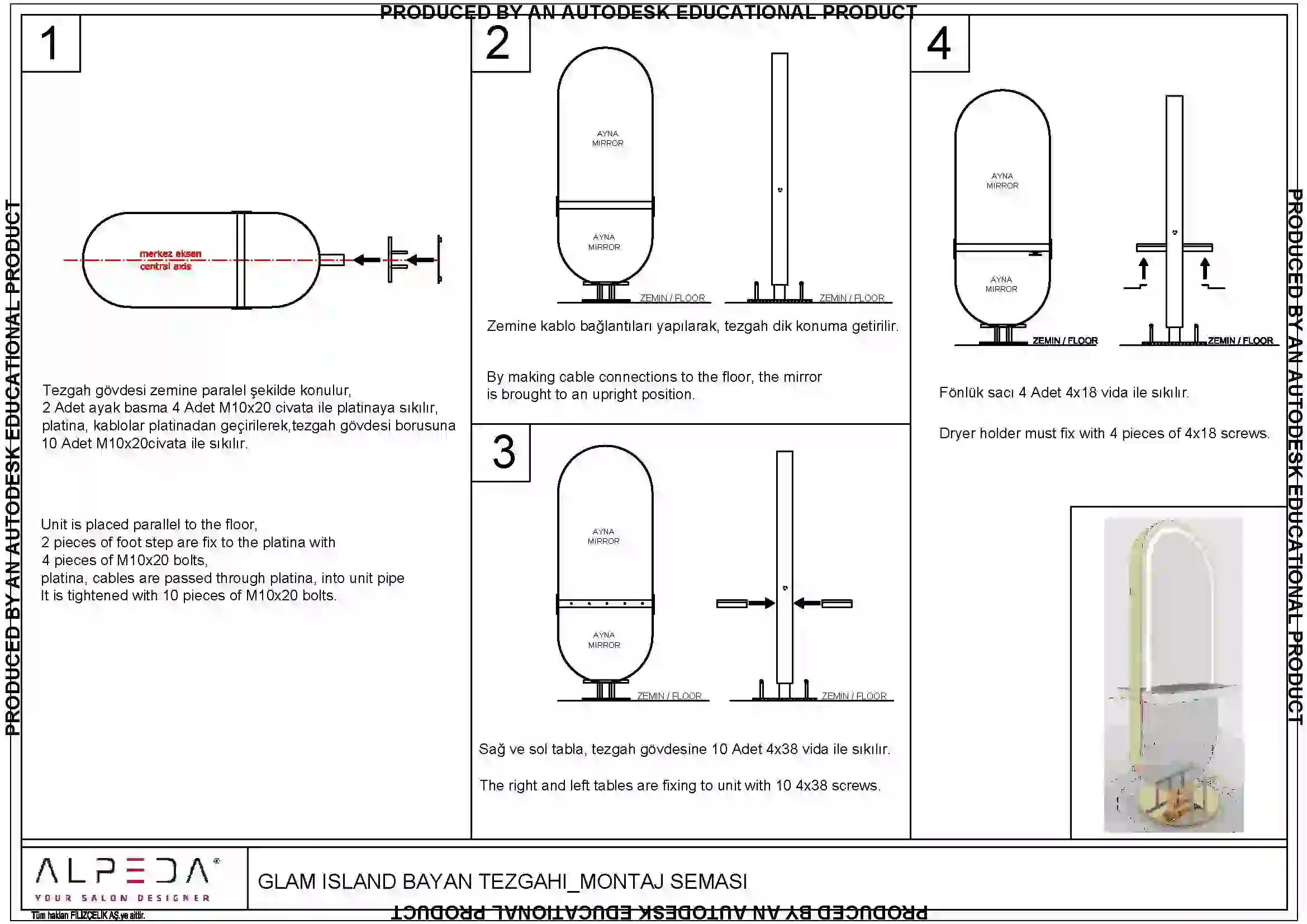 Post lucru coafor / styling unit Alpeda Glam Wall Nk