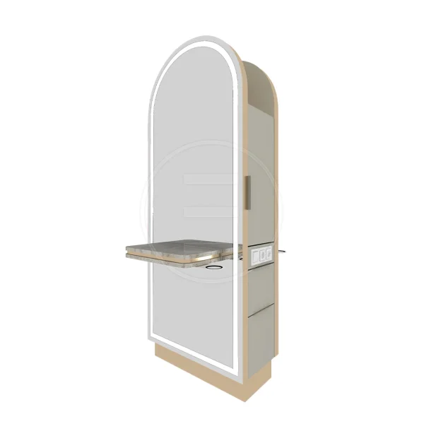 Alpeda Rosh este un post de coafură modern, proiectat pentru saloane care caută soluții compacte, fără a compromite designul sau funcționalitatea. Cu o estetică minimalistă și proporții bine echilibrate, acest model se integrează perfect în spații contemporane și eficiente.
