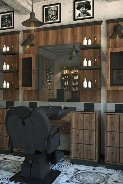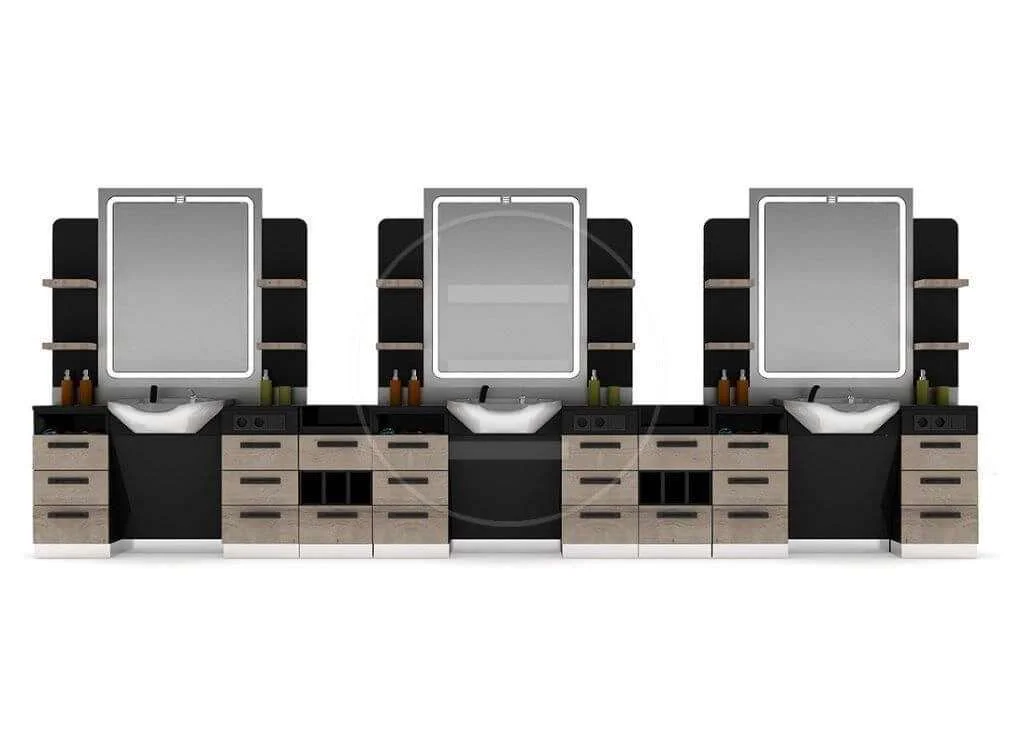 Postul de frizerie Alpeda Felix, prin aspectul sau original, incadreaza perfect orice spatiu, acesta devenind foarte versatil. Spoturile si rafturile de expunere produse deschid spatiul salonului catre unicitate.