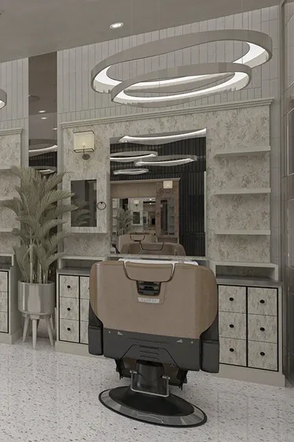 Postul de frizerie Alpeda Felix, prin aspectul sau original, incadreaza perfect orice spatiu, acesta devenind foarte versatil. Spoturile si rafturile de expunere produse deschid spatiul salonului catre unicitate.