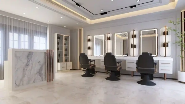Elementul central îl reprezintă cele două oglinzi mari cu iluminare LED integrată, care asigură o lumină uniformă și clară, perfectă pentru realizarea serviciilor profesionale de frizerie. Iluminarea subtilă contribuie atât la confortul vizual al stilistului, cât și la o experiență plăcută pentru client.