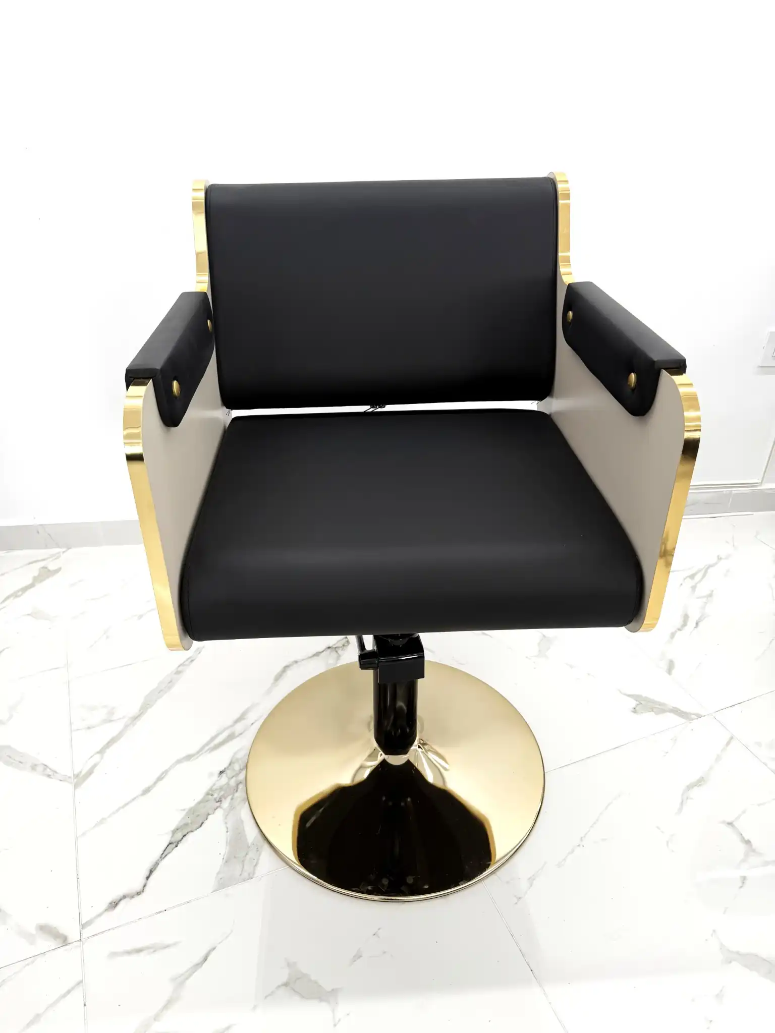 Scaunul Alpeda Kai Gold, este scaun spectaculos prin design, iar acesta va fi elementul de atractie intr-un salon de infrumusetare. Calitatea premium a materialelor folosite si design-ul inovator atrag toate privirile.