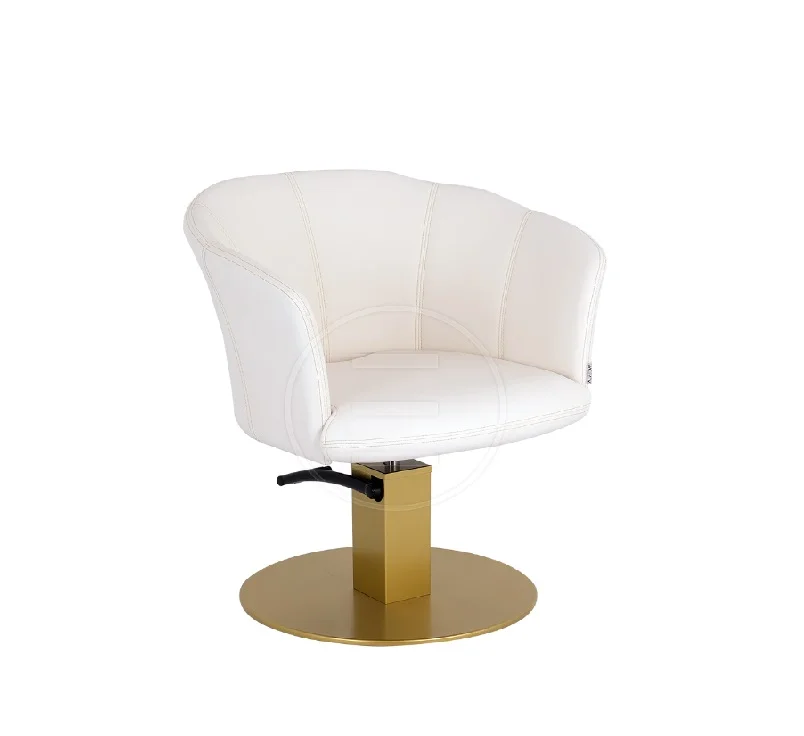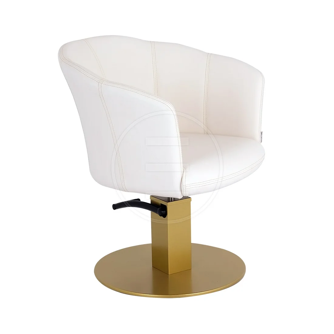 Scaunul pentru coafor Alpeda Celine Gold este inspirat de magia marii nesfarsite. Spatarul ergonimic al acestui scaun de coafor ofera o eleganta si o estetica asemanatoare perlei pretioase a unei midii.