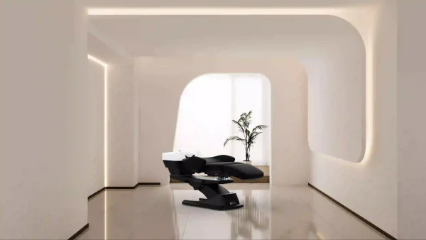 Chiuvetă integrată ergonomică, special concepută pentru tratamente capilare profesionale