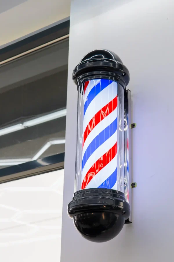 🧔 4. Întărește identitatea de brand. Indiferent dacă frizeria este modernă sau oldschool, barber pole-ul
