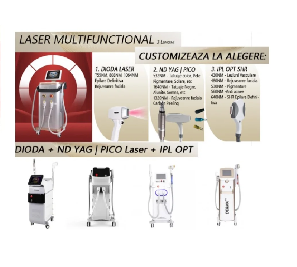 - Lungime de Undă Laser: 755nm, 808nm, 1046nm.
