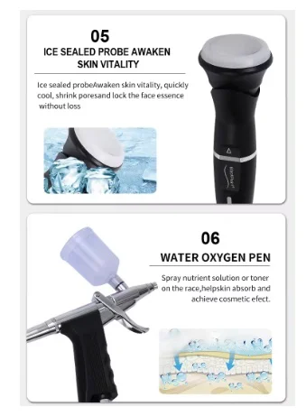 • Versatilitate: O combine facială multifuncțională oferă o gamă variată de tratamente faciale, inclusiv curățare, exfoliere, extracție a comedoanelor, hidratare și tonifiere. Aceasta permite personalizarea tratamentelor pentru a se adapta nevoilor specifice ale fiecărei tipologii de piele, oferind soluții complete într-un singur aparat.