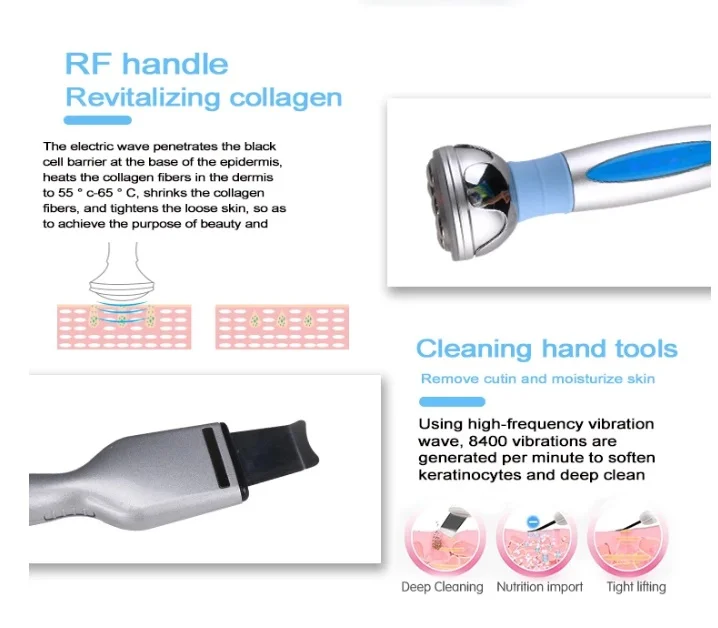 - Import de lichid cu ultrasunete: Facilitează absorbția profundă a produselor de îngrijire a pielii prin utilizarea ultrasunetelor.