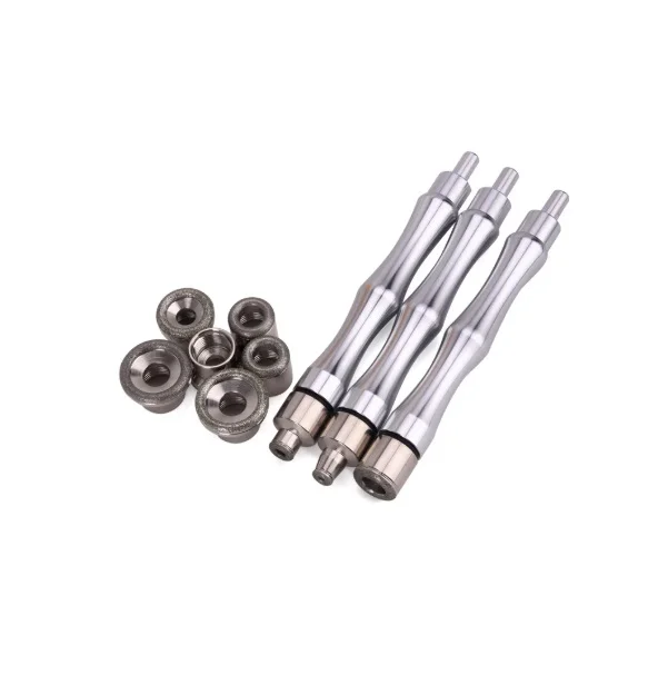 Aspirație și eliberare automată în vid cu 3 mânere de operare identice din oțel inoxidabil și 6 vârfuri de operare de diferite dimensiuni și forme pentru îndepărtarea punctelor negre, ridurilor, acneei, cicatricilor etc. de pe diferite părți ale feței și corpului.