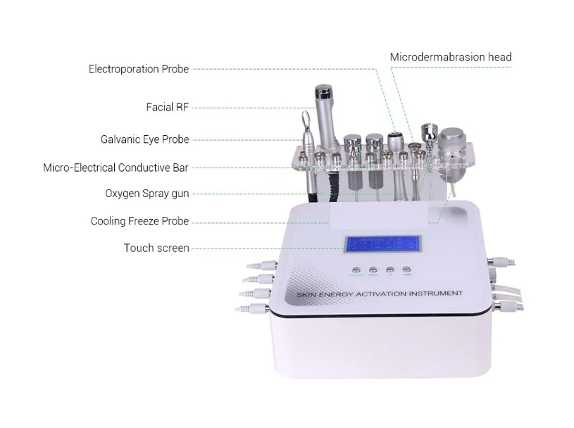Acest aparat de microdermabraziune fabricat în Germania este cea mai recentă tehnologie transdermică, dezvoltată prin utilizarea impulsurilor microelectrice, a radiofrecvenței, a temperaturii ultra-scăzute și a terapiei mecanice, presoterapiei, hipertermiei și terapiei magnetice fizice. Trezește complet celulele oculare, reduce pigmentarea, pielea uscată, reduce pungile de sub ochi și cearcăne, dar și înfrumusețează și conturează chipul.