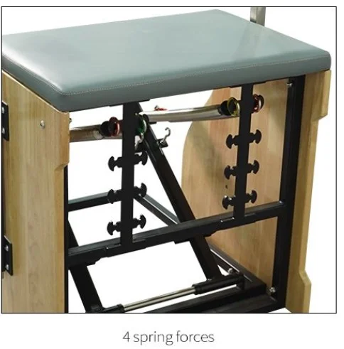 • Scaunul Pilates este dotat cu 4 arcuri care pot fi ajustate la 4 niveluri de rezistență, permițându-vă să efectuați exerciții Pilates pe scaun de diferite intensități.