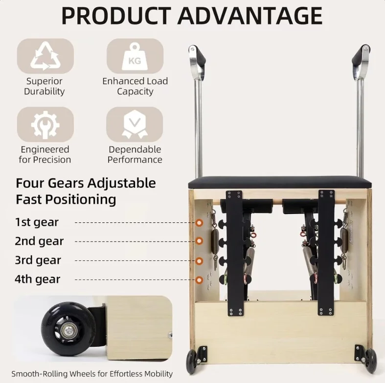 Acest echipament de Pilates combină calitatea materialelor și funcționalitatea avansată pentru a oferi o experiență de antrenament superioară, contribuind la sănătatea și bunăstarea utilizatorilor.