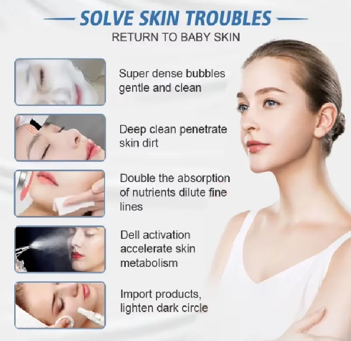 - Pistol de pulverizare cu oxigen: Injectează oxigen sub presiune pentru a îmbunătăți metabolismul pielii și a combate îmbătrânirea.