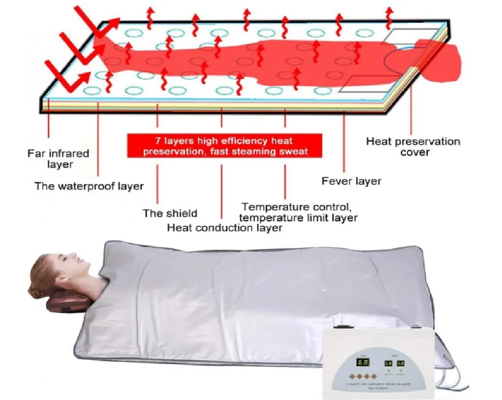 Impactul remarcabil al radiațiilor termice asupra sănătății umane a fost demonstrat în diverse studii medicale. Razele infraroșii sunt absorbite aproape complet și transformate în căldură în straturile superficiale ale pielii. Ele pătrund până la 4 cm în țesutul subcutanat bine vascularizat, accelerând metabolismul și contribuind la eliminarea apei, a grăsimilor arse, metalelor grele și altor toxine. Este important de menționat că acest proces susține circulația fluidelor corporale.