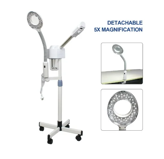 Bucurați-vă de comoditatea acestui abur facial Luxe Spa și a lămpii de mărire Combo Two-în-One. Va va plăcea acest design compact – combină lupa și aburul – este ideal pentru spații mai mici și camere de tratamente faciale. Fabricat din oțel solid pentru o construcție robustă, acest vaporizator cu baza cu cinci picioare, cu o lampa cu lupa, un tampon de pasla pentru ulei esențial în duza de pulverizare a aburului, o lentilă transparență de 3 dioptrii, 5 inch și o închidere automată de siguranță -off Veți aprecia designul acestui vaporizator facial și combo-lampa mag și performanță tuturor echipamentelor.