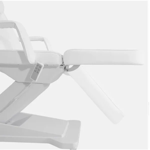 Fotoliul electric de cosmetica este un echipament modern si versatil, conceput pentru a asigura confortul maxim al clientului si usurinta in utilizare pentru specialistii in frumusete si ingrijire personala. Acesta permite reglarea automata a inaltimii, unghiului spatarului si a suportului pentru picioare, facilitand adaptarea pozitiei in functie de necesitatile fiecarui tratament. Datorita motorului electric, patul poate fi ajustat rapid si silentios, economisind timp și oferind o experienta relaxanta.
