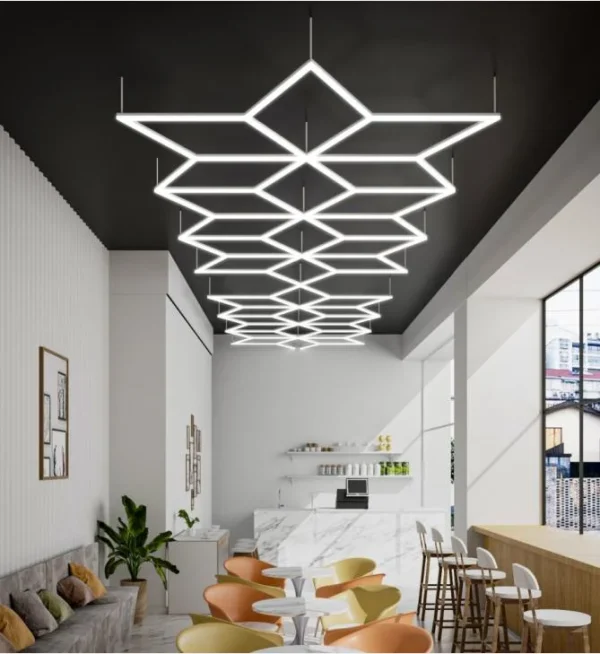 Hexagoanele Luminoase redefinesc conceptul de iluminare, de aceea este indicat in showroom -uri si barber shop-uri unde este necesara multa lumina.