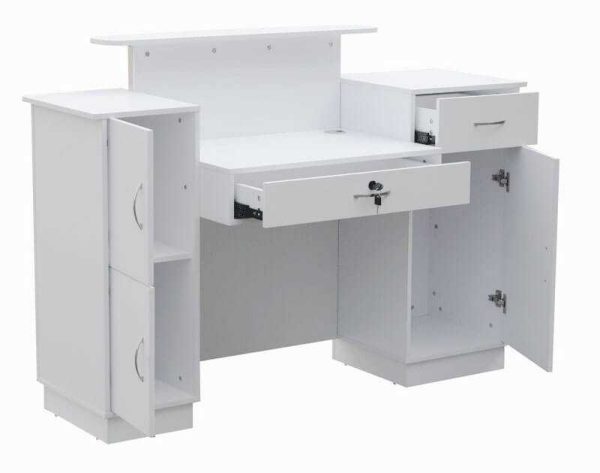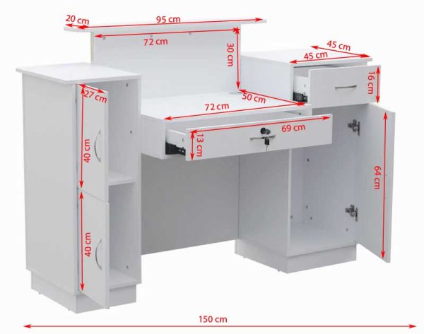 Receptia pentru salon este primul impact pe care clientul il are cu salonul. Amplasata in spatiile destinate primirii clientilor este foarte utila in saloanele de infrumusetare. Fabricata din MDF de cea mai inalta calitate, aceasta receptie are o structura robusta si clasica, fiind potrivita in orice salon.