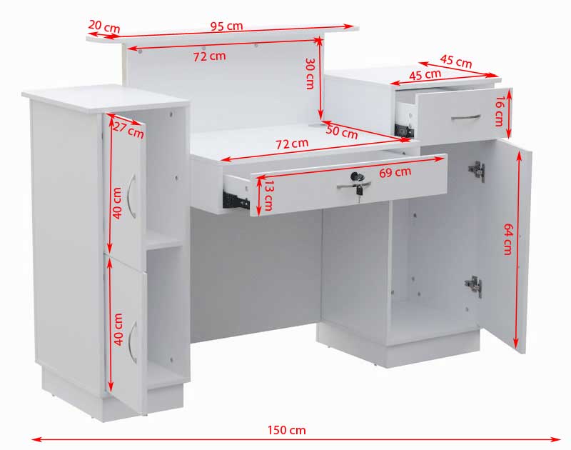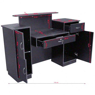 Receptia pentru salon este primul impact pe care clientul il are cu salonul. Amplasata in spatiile destinate primirii clientilor este foarte utila in saloanele de infrumusetare si barber shop-uri. Fabricata din MDF de cea mai inalta calitate, aceasta receptie are o structura robusta si clasica, fiind potrivita in orice salon sau barber shop.