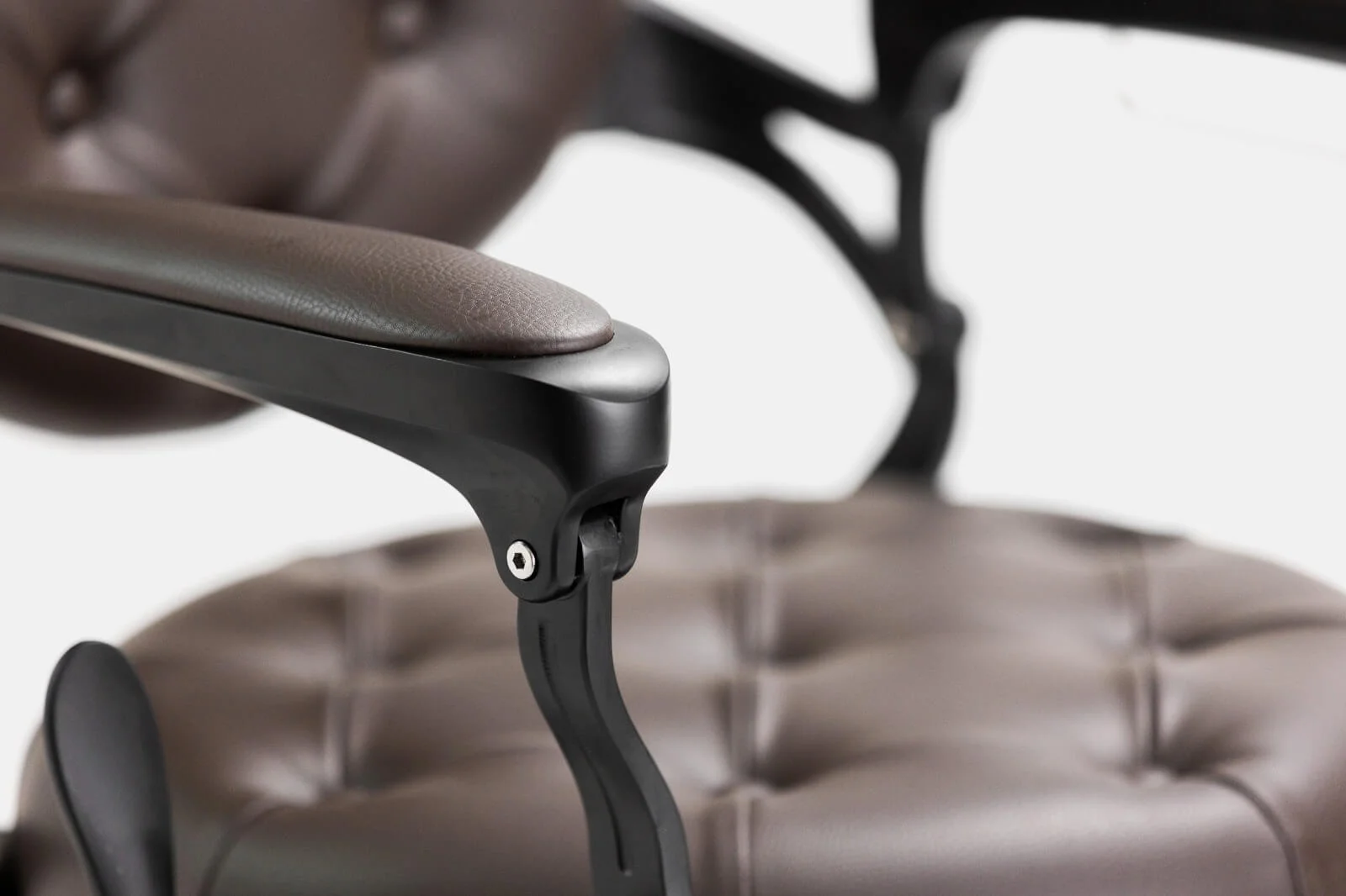 Scaunul de frizerie/ Barber chair Dduueett Mack Brown, este o capodopera a epocii moderne și in acelasi timp atat de nostalgic si vintage. Curajul de a crea ceva „nou si neincadrat”, combinat cu aprecierea traditiilor „vechi si fara cusur” nu poate duce decat la un rezultat fenomenal.