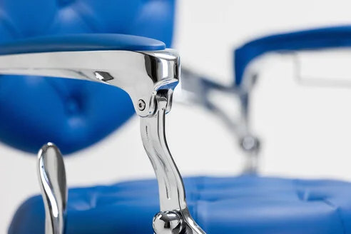 - scaun de frizerie, înclinabil hidraulic, cu un design elegant și emblematic,