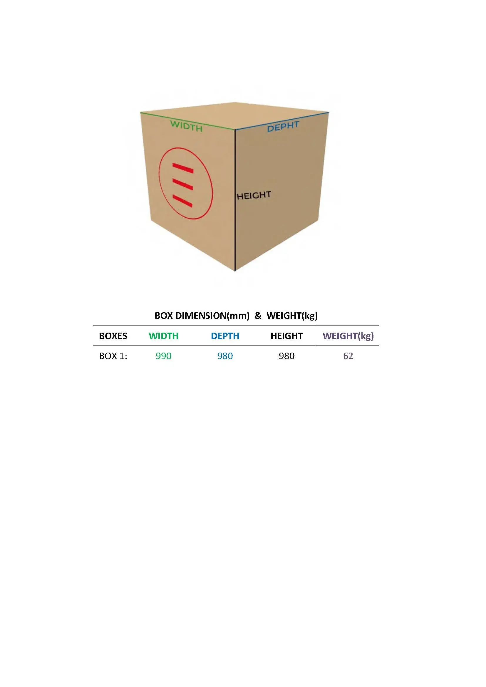 - dimensiuni colet: 990 cm / 990 cm / 980 cm