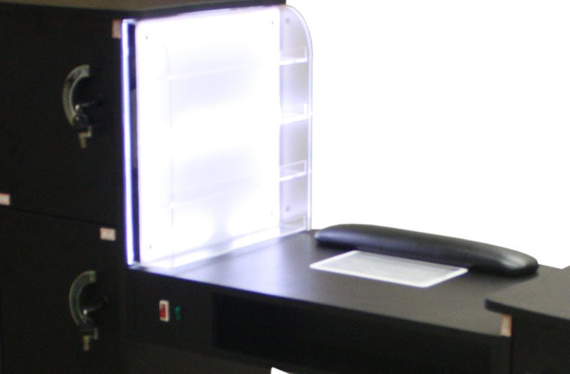 - extracție comutabilă de praf de 220V (25 W) cu sac filtrant integrat în suprafața de lucru